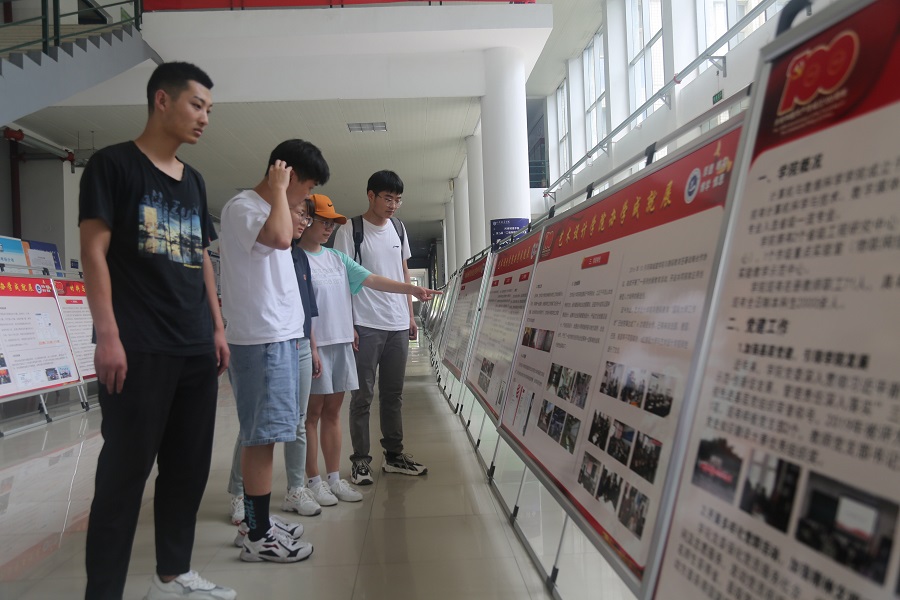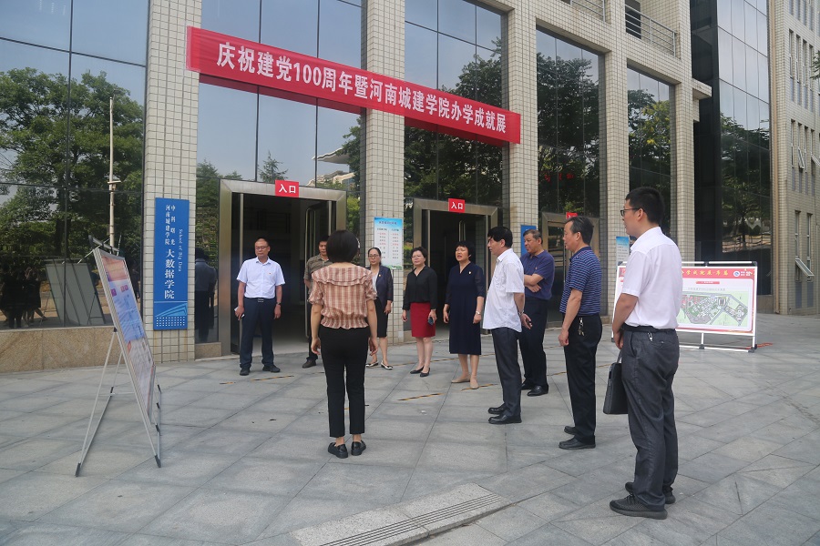(通讯员 姜鹏乐)6月30日上午,我校庆祝建党100周年暨河南城建学院办学成就展正式开展。校党委书记张惠贞、党委副书记王靖、副校长宿金勇到场观展并作指导。校党委办公室、党委组织部、党委宣传部、党委统战部、土木与交通工程学院、计算机与数据科学学院等单位同志陪同观展。
