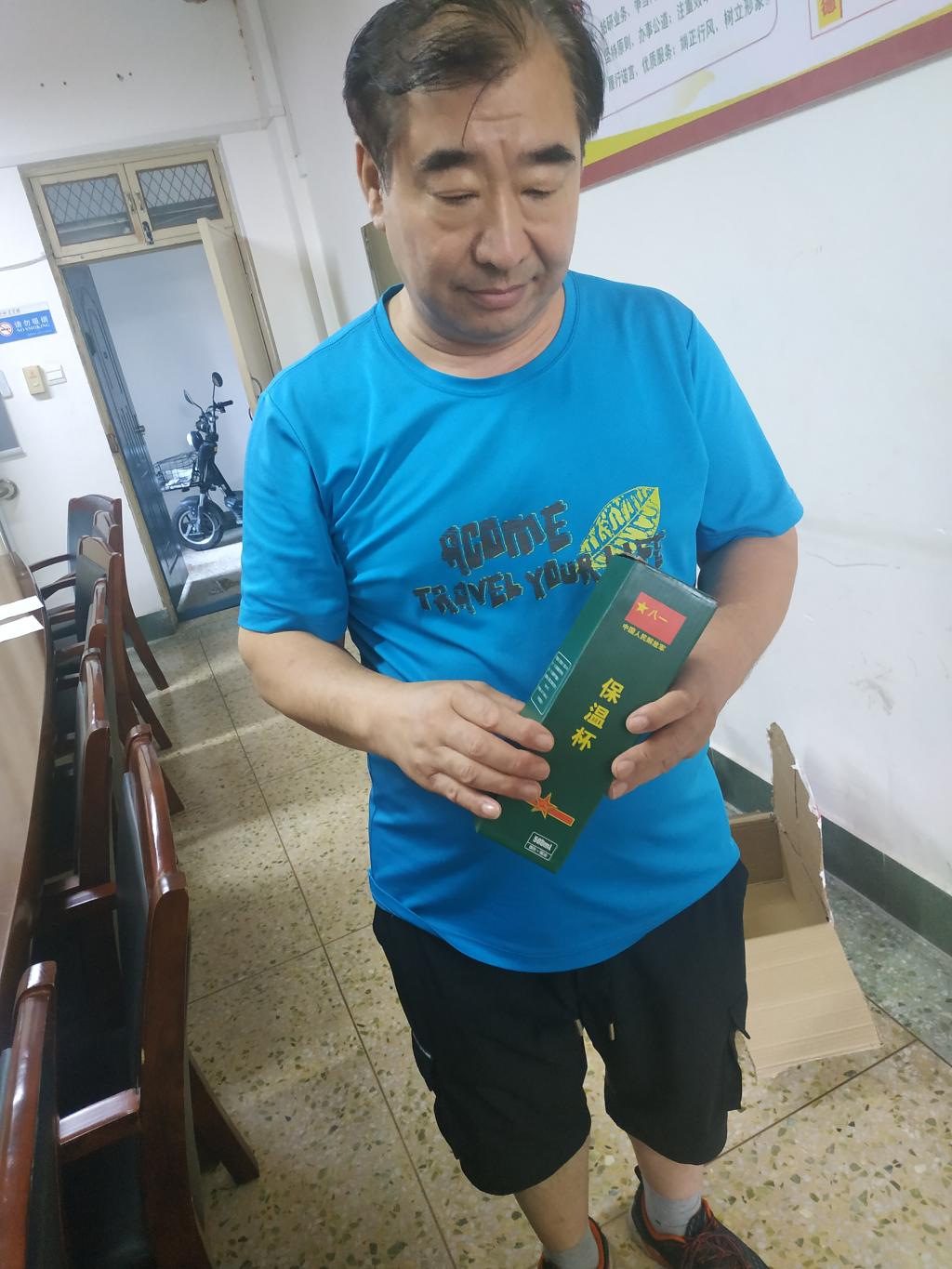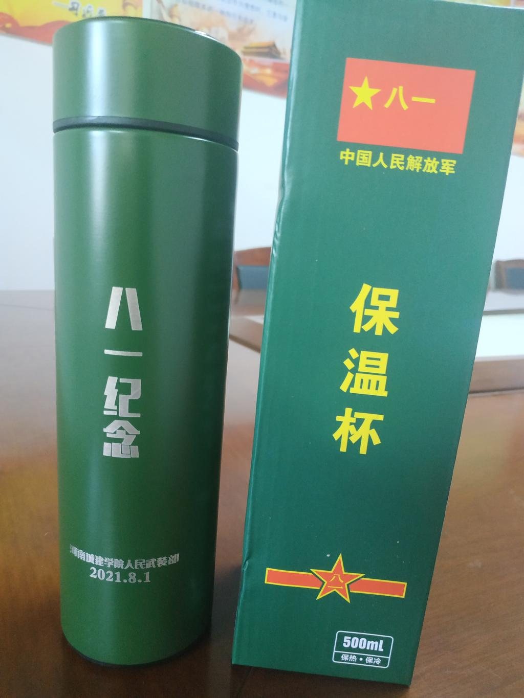 现场,刻有“八一纪念”保温杯整整齐齐地摆放在征兵工作服务站,武装部部长何燚把水杯递到退役军人手中,并向大家致以节日的祝福。同时,希望大家能够继续发扬军人作风和优良传统,为学校发展作出积极贡献。