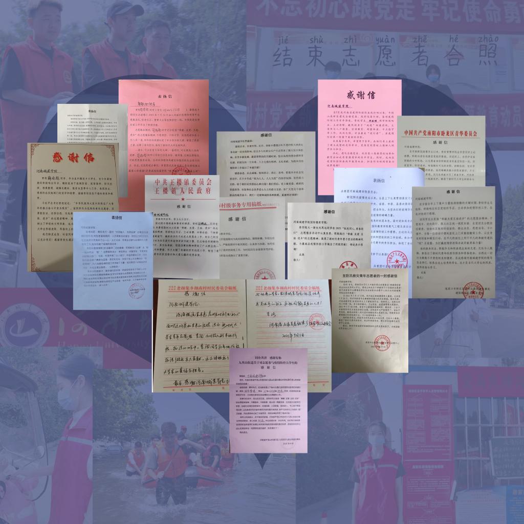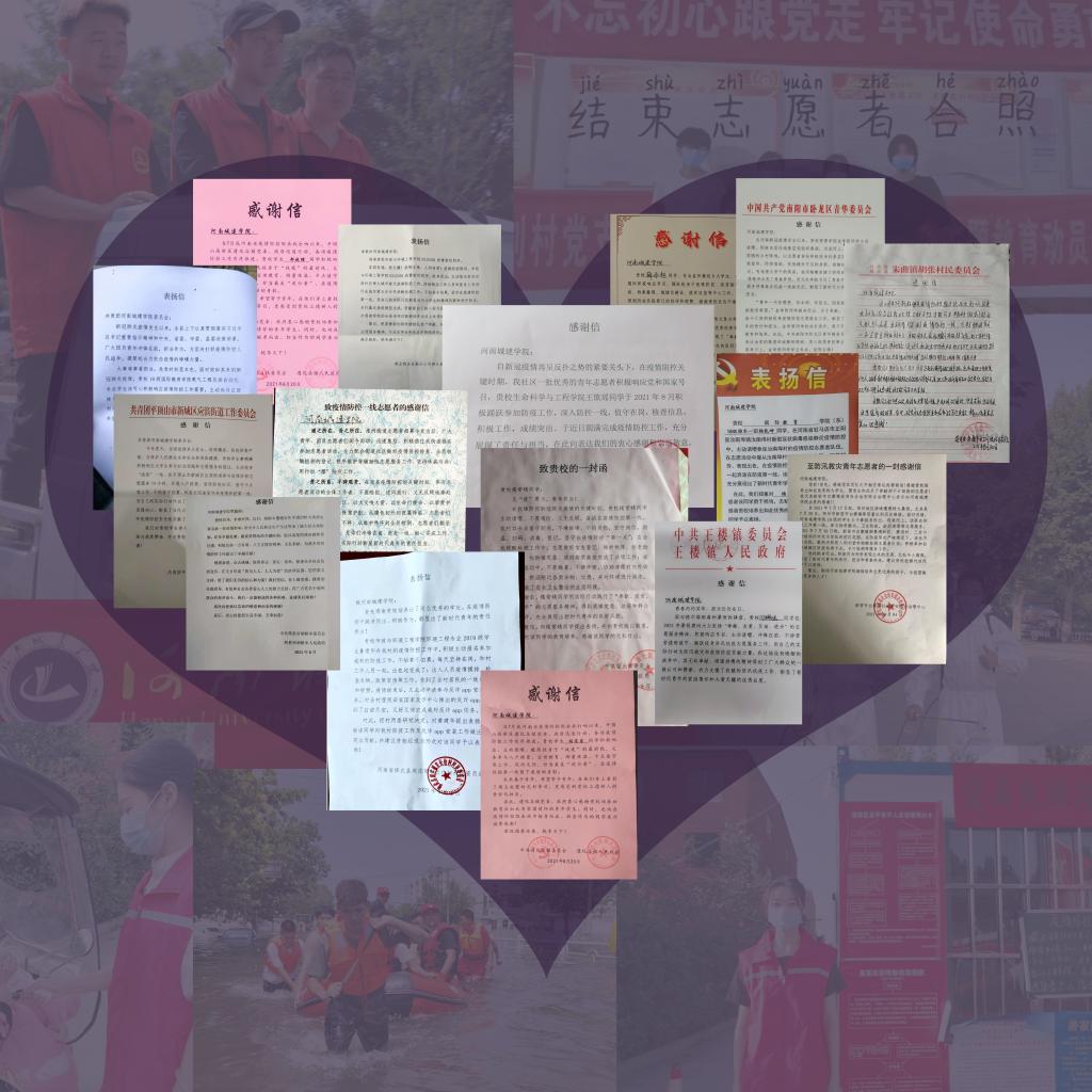 (通讯员 李素锦)今年暑期,中原大地暴雨倾盆而至,疫情卷土重来,我们经历了惊心动魄的汛情和疫情的双重考验。我校广大师生积极响应党和政府的号召,在暑假期间,纷纷投入当地的防疫抗洪中,贡献青春力量,用实际行动践行初心使命,谱写了无愧于新时代的青春赞歌。截止目前,学校和广大师生收到当地政府、街道办事处、村民委员会以及企事业单位送来的感谢信共计231封,一封封充分感激、带着温情的感谢信不仅仅是对河南城建学院的肯定,更是彰显了我校师生不畏艰险,迎难而上,共克时艰,无私奉献的优秀品质。