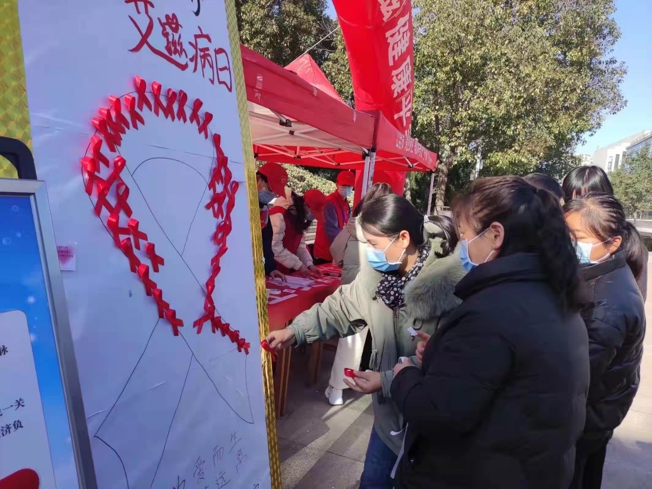 另悉,为推进学校艾滋病防控工作,积极动员广大师生参与到防治艾滋病的宣传教育中去。12月1日,校医院、校青年志愿者协会在图书馆前喷泉广场,通过知识展板、发放宣传资料、宣传条幅签名、接受咨询等多种形式开展丰富多彩的防艾宣传教育活动,使预防艾滋病意识根植于心,为创建“零艾滋”校园持续助力。
