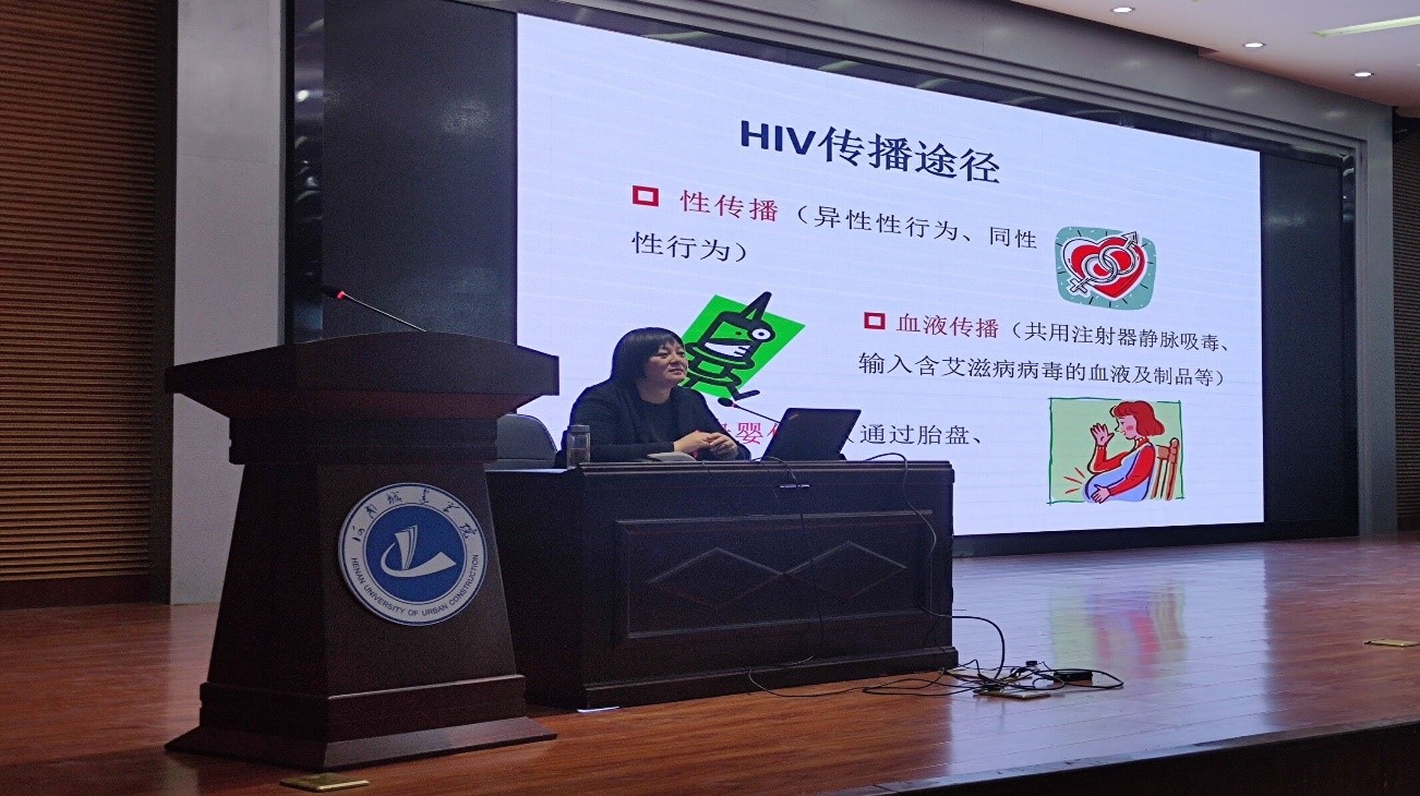 李琰琳围绕身边艾滋病的实例,全面阐述了艾滋病的性质、危害、转播途径、流行病学、防治等基本知识,并通过讲解数据,分析案例、有奖问答等形式,讲解生动,有趣互动,有效地向同学们普及了防艾基本知识和技能。讲座结束后,针对同学们积极踊跃的提问发言,市疾控中心专家进行了详实的答疑解惑。通过此次讲座,使同学们更加深入地了解了艾滋病的相关知识,提高了自我防护的意识。
