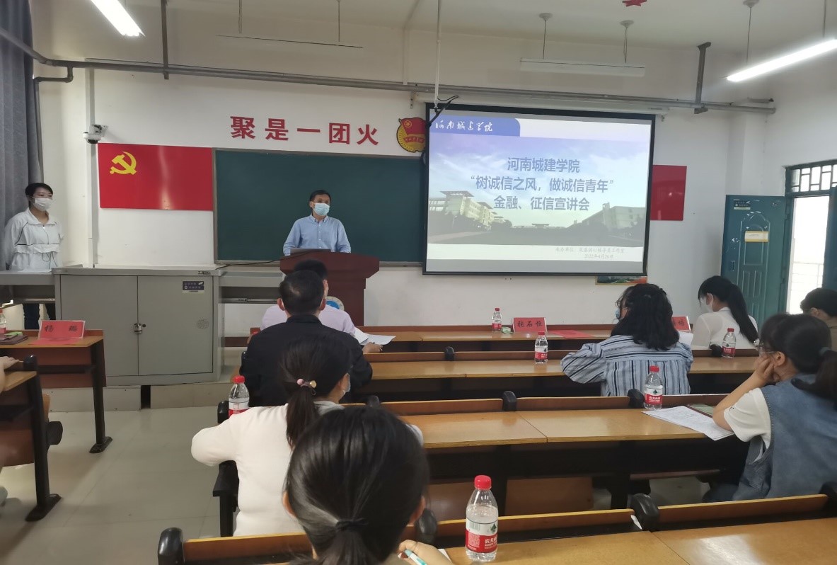 为宣传和普及金融、征信知识,以诚信教育月活动为依托,我校于4月26日在八号楼B座201室举办了“树诚信之风,做诚信青年”金融、征信知识讲座,讲座邀请中国人民银行市中心分行征信科科长张石恒、培训师邓培培为我校师生开展宣讲,党委学生工作部(处)相关负责人,各学院资助专员及诚信宣传大使等30余人参加了此次活动。讲座由管理学院党委副书记杨璐主持。