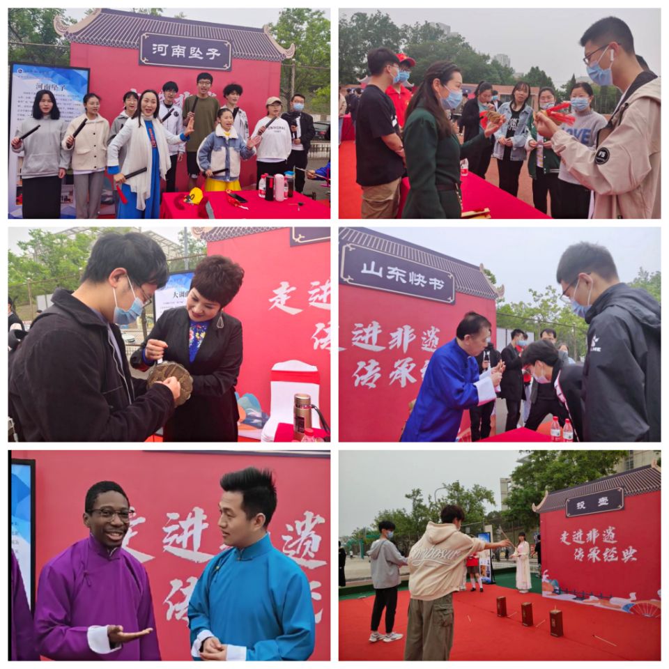 4月30日上午,由我校公共艺术教育中心主办、体育教学部协办的“走进非遗 传承经典”非遗进校园展演暨传习体验活动在学校厚德体育场成功举行。校党委副书记王靖出席活动现场。河南省曲艺家协会副主席、国家一级演员崔银龙,平顶山市曲艺家协会常务副主席、全国首届河南坠子大赛金奖获得者王占军,国家级非物质文化遗产“马街书会”书状元黄艳芳、王雪卉,第二届中国曲艺节“牡丹奖”获得者郭淑菊以及10余位非遗传承人、专业演员和民间艺人走进校园,为师生带来了丰富、精彩的非遗及传统文化项目展示。