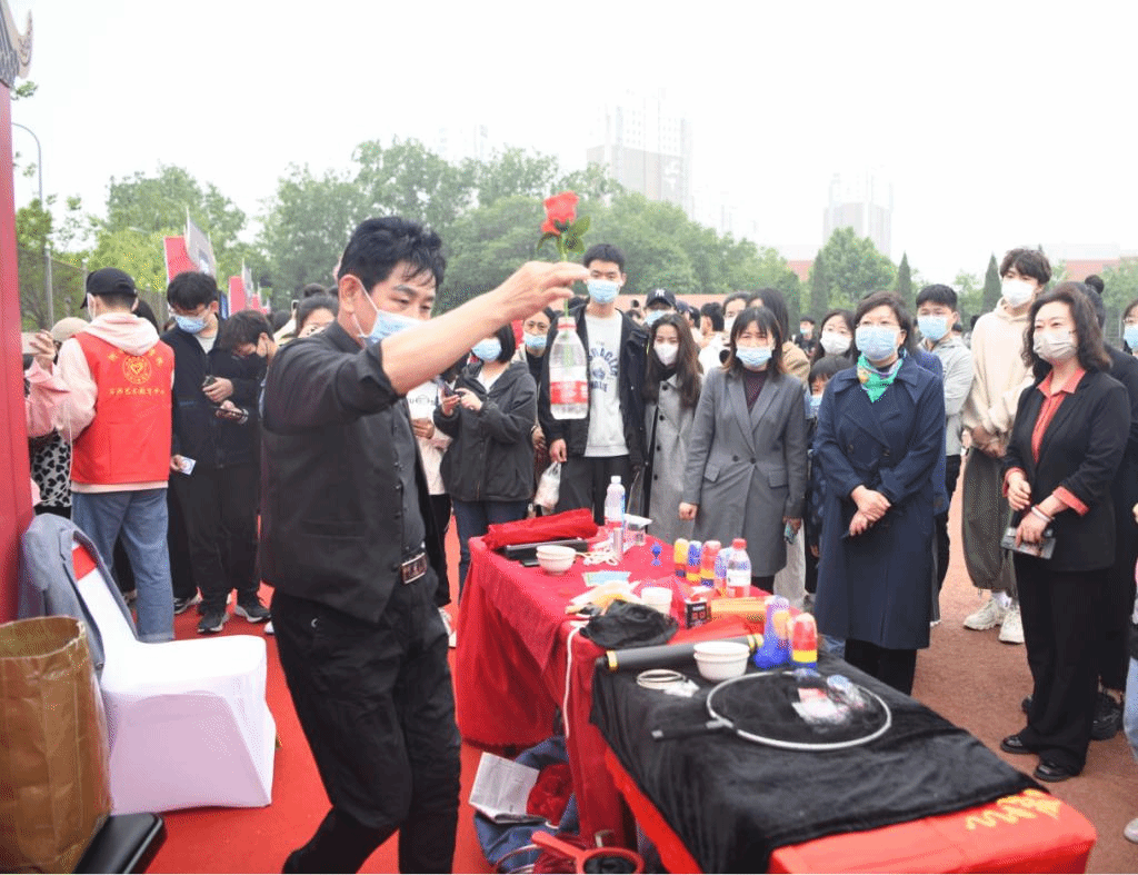 本次活动涵盖曲艺、民俗和传统体育等多个门类,共设立河南坠子、大调曲子、快板、山东快书、相声、魔术、糖画、面塑、投壶、舞龙、少林武术、空竹等12个展位。艺术家们在现场展示了精湛的技艺绝活,亲切地与学生们进行交流,耐心地解答学生们提出的问题,热情地指导学生们进行学习和实践,让同学们近距离感受到了中国优秀传统文化的独特魅力。丰富多彩的体验活动,吸引了络绎不绝的师生围观和参与,现场气氛热烈、井然有序。