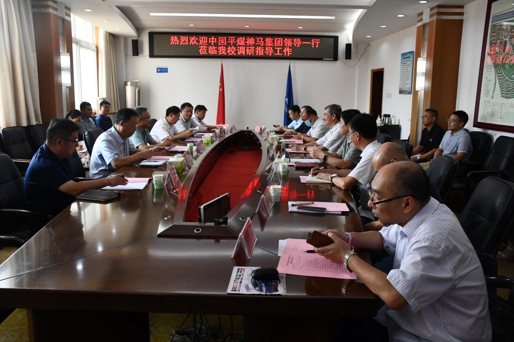 7月18日上午,中国平煤神马集团副总经理万善福、江俊富、王安乐、科技创新管理部总监范新川等一行到我校考察交流并洽谈光伏绿色能源综合应用实验室共建等事宜。校长王召东在行政楼第一会议室会见万善福一行,并进行座谈交流。副校长陈松涛,校长办公室、合作与发展规划处、科研处(学科建设办公室、研究生工作处)、土木与交通工程学院、能源与建筑环境工程学院、数理学院等部门负责人参加座谈。会议由陈松涛主持。