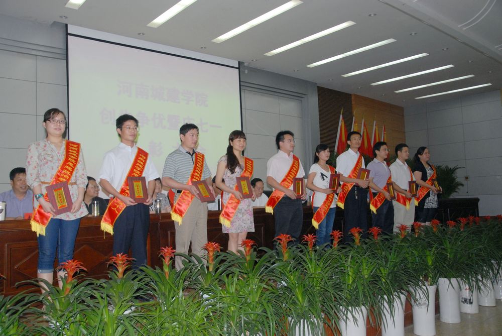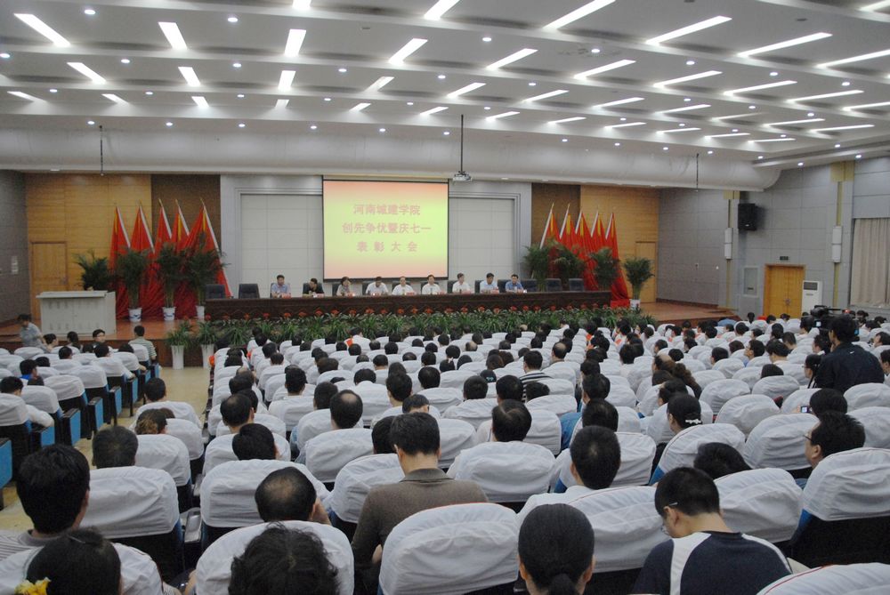 6月30日下午,我校在学术报告厅隆重举行创先争优暨庆“七一”表彰大会,对两年来学校开展的“创先争优”活动进行回顾总结,对过去一年里学校党建与思想政治工作中涌现出的先进集体和个人进行表彰,并安排暑期重点工作。学校党委书记李德平作重要讲话,院长孔留安对暑期工作进行部署。校领导史战芳、王召东、李建生、陈丙义、杨留栓、王春阳、赵金安出席大会,大会由党委副书记史战芳主持。全校副科级以上干部、受表彰人员参加大会。