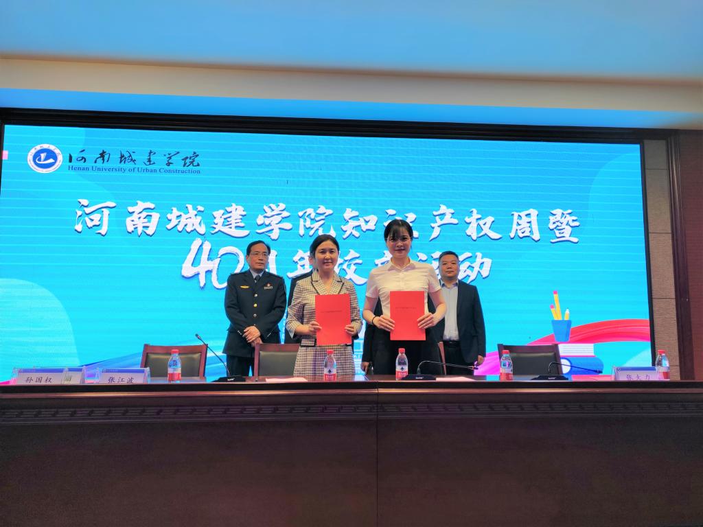 启动仪式上,毛艳丽和孙国权共同为我校河南省高校知识产权运营管理中心揭牌,科研处处长张大力和科研处有关负责人代表河南城建学院分别与平顶山市市场监督管理局、洛阳华和知识产权有限公司签订了知识产权工作校政、校企战略合作协议。