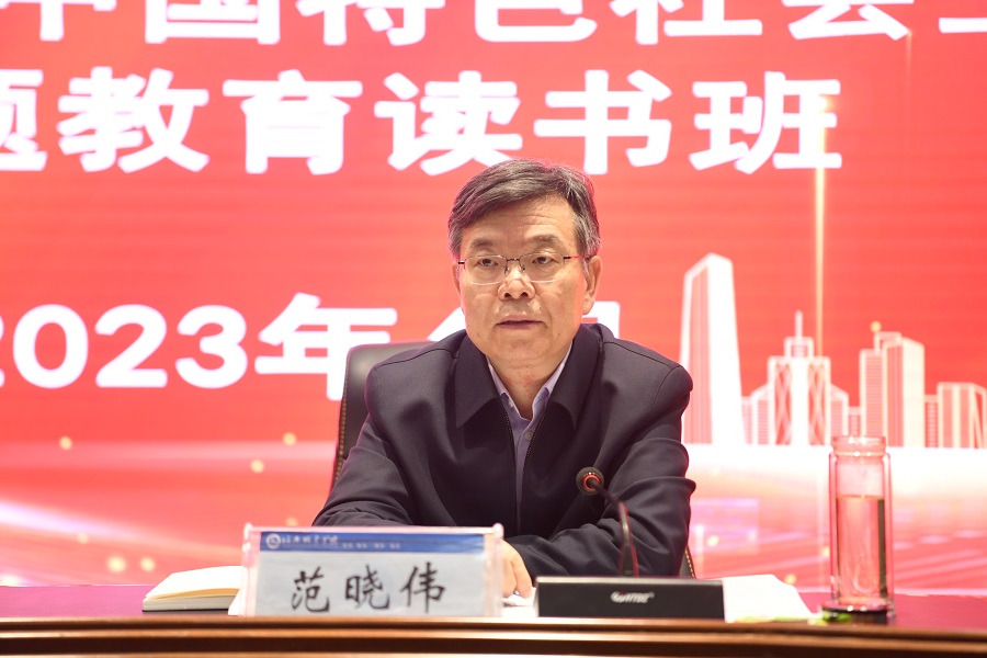 范晓伟就进一步开展好主题教育,提出三点要求:一要持续在抓学习上下功夫。要进一步端正态度,带着“补课”的动机和心态,深读习近平新时代中国特色社会主义思想相关原著,细悟习近平总书记系列重要讲话精神,强读强记、求深求细,常学常新、求真求精,持续推动党的创新理论走深走心走实。下一阶段,各二级党组织要持续开展读书班活动。二要持续在强党性上下功夫。要坚持边学习、边对照、边检视、边整改,把问题整改贯穿主题教育始终,把检视反思作为自我净化、自我完善、自我革新、自我提高的重要途径,不断夯实政治能力,锤炼政治担当本领,擦亮忠诚底色,做到政治忠诚、思想忠诚、行动忠诚。三要持续在抓落实上下功夫。全体党员干部尤其是处级以上干部要以身作则,切实在这次主题教育中干在实处、走在前列,深入了解师生所思所盼,着力解决师生最现实、最直接、最迫切的问题,团结带领广大师生推动学校高质量发展,以推动学校高质量发展和为师生办实事办好事检验主题教育成效。