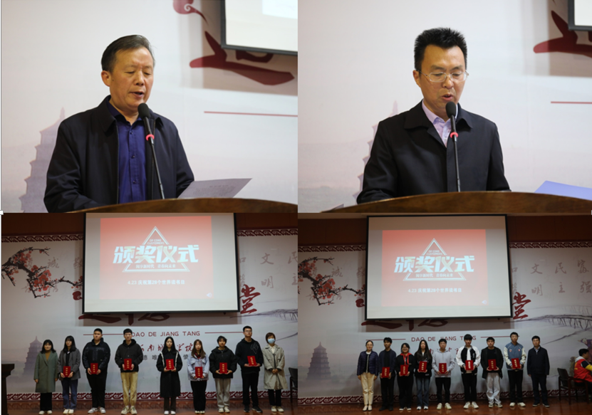 启动仪式上,图书馆馆长武伯军宣读了我校2023年读书节活动实施方案,校党委委员、宣传部部长张建国宣读了《河南城建学院2022年“读书之星”获奖名单》,与会领导分别为2022年“读书之星”代表进行颁奖。河南城建学院读书协会优秀学生代表汤鑫茹、刘怡晴、王申宝、梁浩然朗读了《一本好书》,带领大家徜徉书籍的海洋。2022年“读书之星”学生代表高原向大家分享了自身阅读感言,河南城建学院读书协会学生代表张敏宣读了河南城建学院《读书倡议书》。