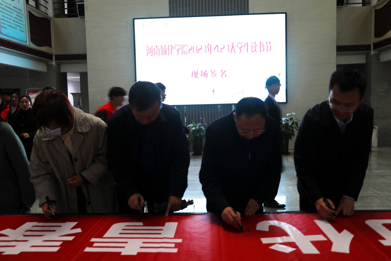 仪式结束后,与会人员在图书馆一楼大厅举行了2023年大学生“读书节现场签名”活动。