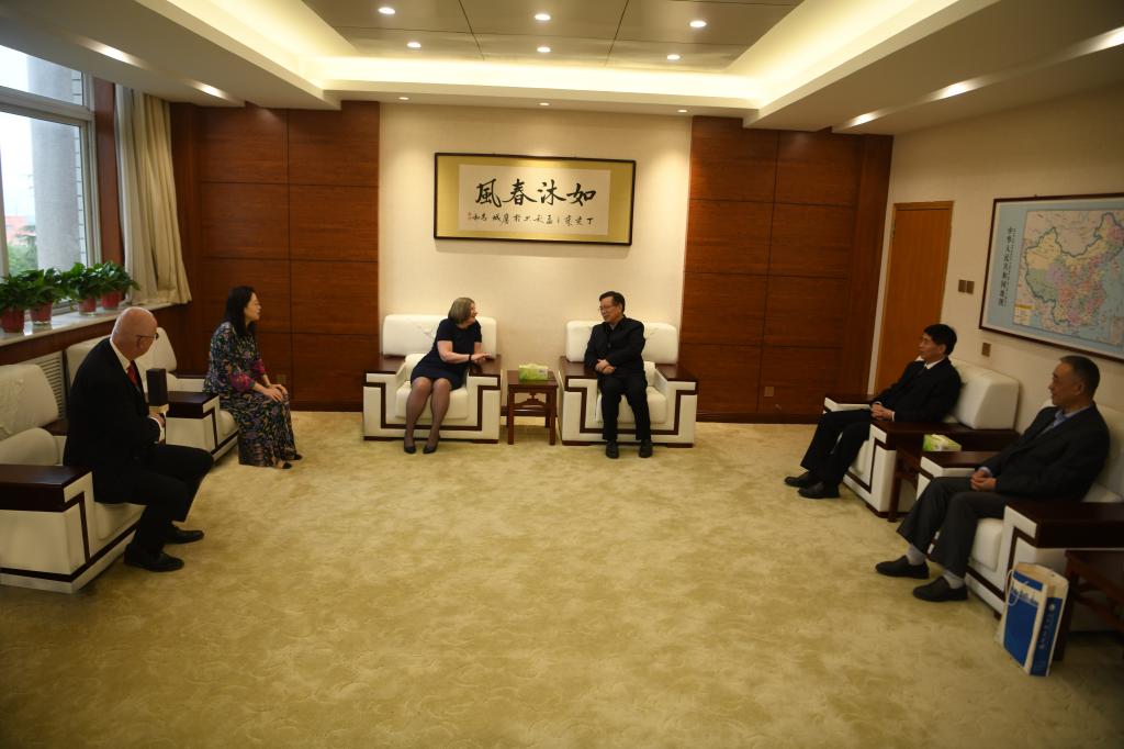 4月24日,由英国高地与群岛大学珀斯校区副校长韦罗妮卡·林奇、科技工程和数学学院院长尼基·英格利斯、科学工程和航空系系主任海迪·霍普、合作关系部主任申琳一行四人组成的代表团来校交流访问。