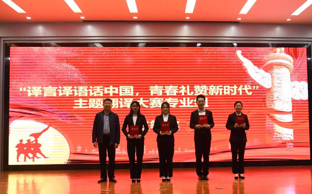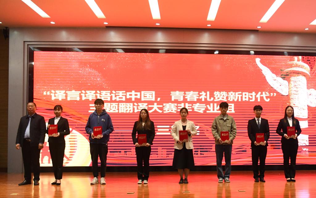 4月25日下午,由校党委组织部、教务处、学生处、团委主办,外国语学院承办的“译言译语话中国,青春礼赞新时代”主题翻译大赛专业组决赛暨颁奖典礼在行政楼学术报告厅成功举行。副校长宿金勇出席并颁奖。主办单位、承办单位负责人,各学院党委书记、副书记及学生代表300多人参加此次活动。