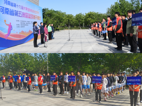 为全面贯彻落实党的二十大精神,响应党中央“发展体育运动,增强人民体质”的号召,4月26日上午,由中共河南省委宣传部、河南省教育厅、河南省科学技术厅、共青团河南省委、河南省文化和旅游厅、河南省学生联合会主办,河南城建学院承办、国际教育学院协办的河南省第十九届大学生科技文化艺术节第五赛区篮球赛在我校体育馆拉开序幕。校党委副书记王靖出席开幕式并讲话。学校相关部门负责人和来自南阳理工学院、黄淮学院、信阳学院等第五赛区的高校参赛队参加了开幕式。