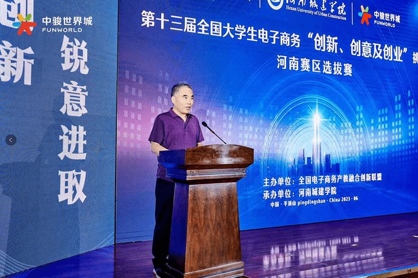 平顶山市商务局党组成员、副局长张绍周受邀出席大赛并致辞,张绍周向大赛的举办表示祝贺并介绍了平顶山市电商发展情况。他指出,电子商务是催生数字产业化、拉动产业数字化、推动治理数字化的重要引擎,是推动国内经济和社会发展的重要力量,更是推动大众创业、万众创新的重要途径。同时,他表示平顶山市商务局将一如既往地加强建立与河南城建学院的合作,聚集优势资源,加大政策支持。