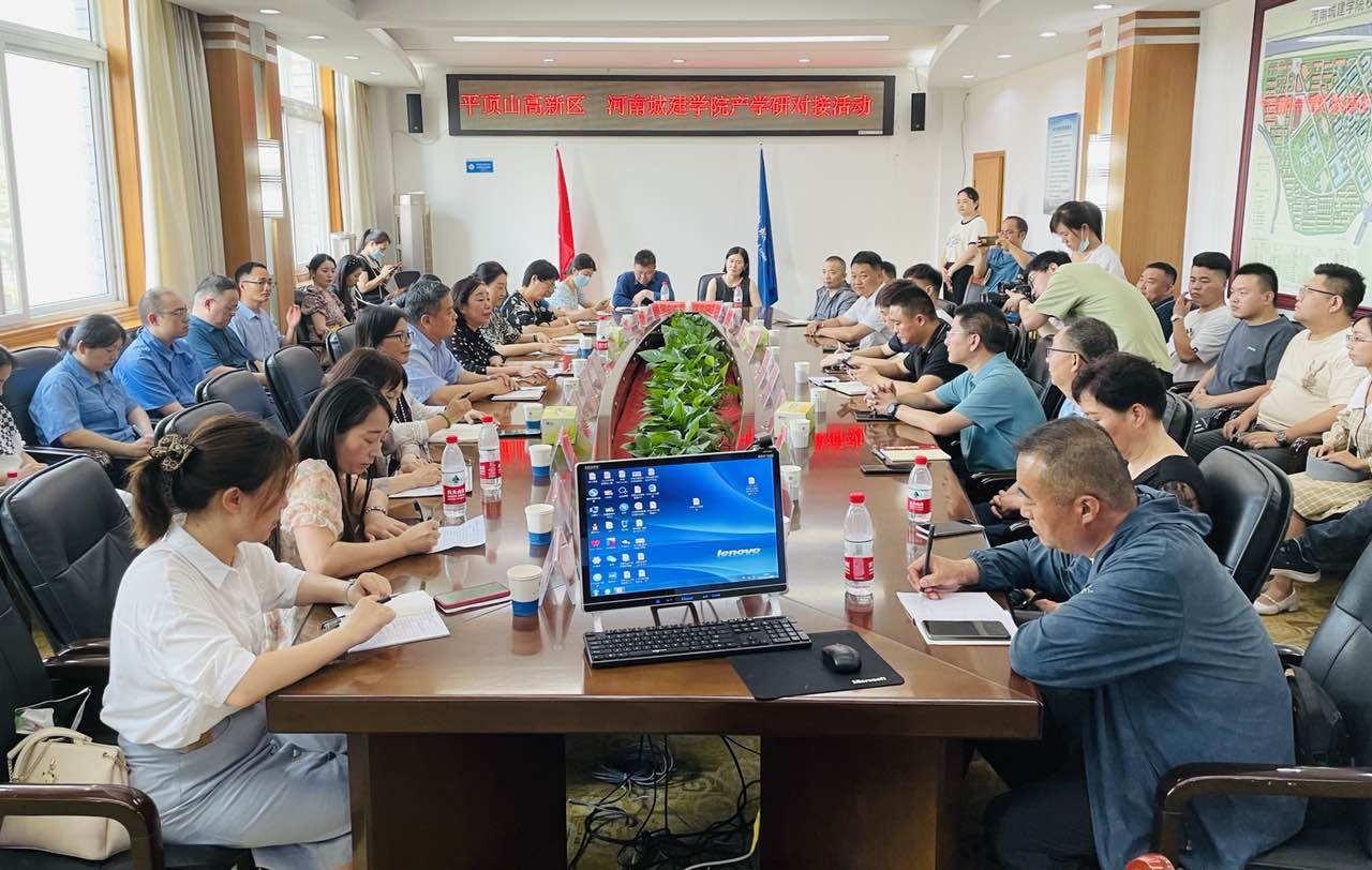 为深入开展学习贯彻习近平新时代中国特色社会主义思想主题教育,积极开展产学研对接,实现融合发展。6月26日下午,我校与平顶山市高新区产学研对接活动在我校行政楼二楼会议室举行。副校长毛艳丽、平顶山高新区科技创新局局长杨宏出席会议,高新区18家企业负责人、科研处(学科办/研工处)、电气与控制工程学院、材料与化工学院等单位负责人及博士代表参加会议。会议由科研处(学科办/研工处)处长张大力主持。