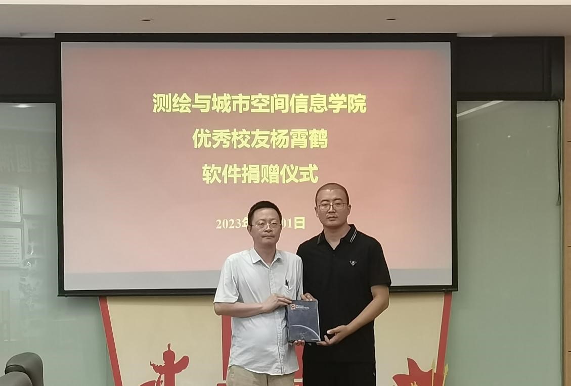 会后,优秀校友杨霄鹤向学院捐赠了一款自主研发的软件,用于学院事业发展,测绘学院院长代表学院接受了捐赠。