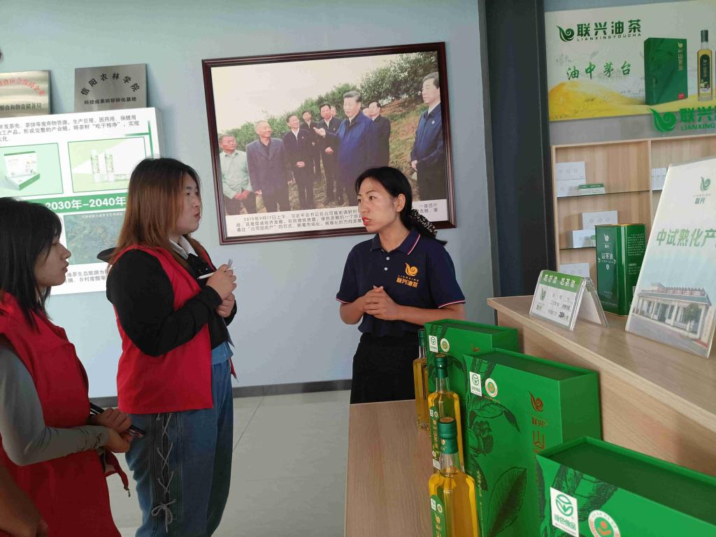 队员听工作人员讲解油茶产品
