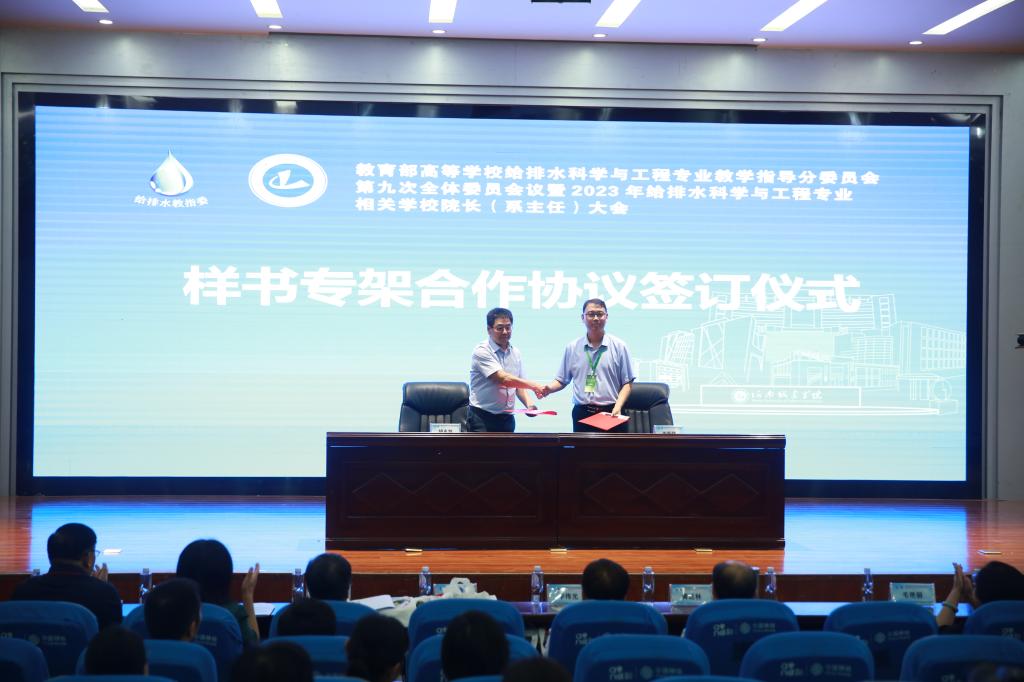 会议闭幕式在河南城建学院行政楼报告厅举行,由教指委副主任张智教授主持,各分会场主持人代表王宗平、左剑恶、蒋柱伍、孙井梅、方正分别总结汇报5个分会场研讨要点。教指委秘书长时文歆教授宣读了本次大会《会议纪要》。闭幕式上我校与中国建筑出版传媒有限公司签订《样书专架合作协议》。最后,教指委副主任张智教授代表给排水教指委进行了会议总结。