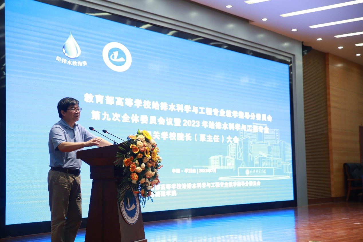 7月20日-22日,教育部高等学校给排水科学与工程专业教学指导分委员会第九次全体委员会议暨2023年给排水科学与工程专业相关学校院长(系主任)大会在平顶山市召开。教育部高等学校土木类专业教学指导委员会(以下简称“土木类教指委”)副主任委员、给排水科学与工程专业教学指导分委员会(以下简称“教指委”)主任委员李伟光,土木类教指委委员、教指委副主任委员邓慧萍、黄廷林,教指委副主任委员张智、秘书长时文歆,教指委委员左剑恶、冯萃敏、孙井梅、岳秀萍、黄天寅、张燕、张克峰、方正、王宗平、柯水洲、荣宏伟、关清卿、张金松等嘉宾出席会议。本次大会由我校承办,共有来自全国90余所高校的230多名教师参加会议。
