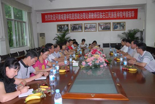考察期间,考察组还走访了广西师范大学、右江民族医学院等高校。在与右江民族医学院人文社科部座谈中,双方就思想政治教育与学校的办学特色紧密结合的教学经验进行了深入的交流。同时就思政课的课程建设、学科建设、师资队伍建设、人才培养、教学、科研等共同关心的问题进行了探讨。