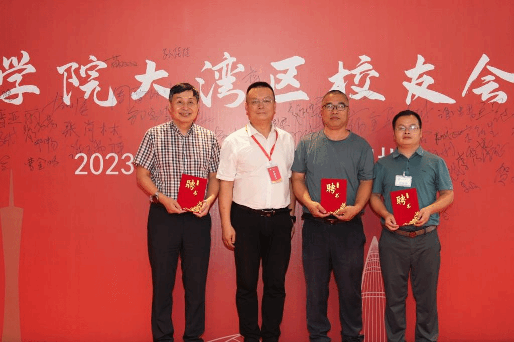 会上,宿金勇为大湾区校友会授牌,并为第一届理事会会长颁发聘书,宋新生为第一届理事会副会长、秘书长颁发聘书,杨毅为第一届理事会理事颁发聘书,谢忠君为副秘书长颁发聘书。