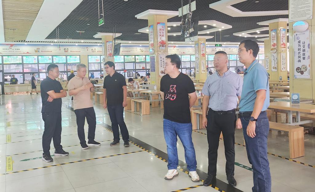 白万备一行参观了布芳园餐厅和教工餐厅洗消间、后厨设施配置及菜品的投料配比、克重复秤、监督投诉岗和称重台等关键环节。刘宁深入细致介绍了食堂“日管控,周排查,月调度”安全管理模式、原材料招标采购、加工制作、留样消毒的流程及具体做法等。双方积极交流探讨后勤管理服务工作,特别是针对学校后勤食堂日常管理的亮点及难点、卫生安全管理、应急处理办法等方面进行了深入交流。白万备对我校食堂的管理给予充分肯定和高度认同。