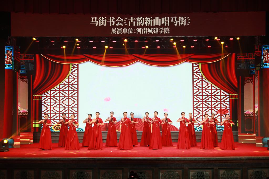 此次音乐类传承项目共有14个高校的17个节目进行展示,我校师生创编表演的曲艺联唱《古韵新曲唱马街》,通过河南坠子、音乐快板等多种曲艺形式展示了马街书会的深厚魅力,展现了新时代河南城建学院学子积极传承优秀传统文化的精神风貌,赢得了全场观众的高度好评。