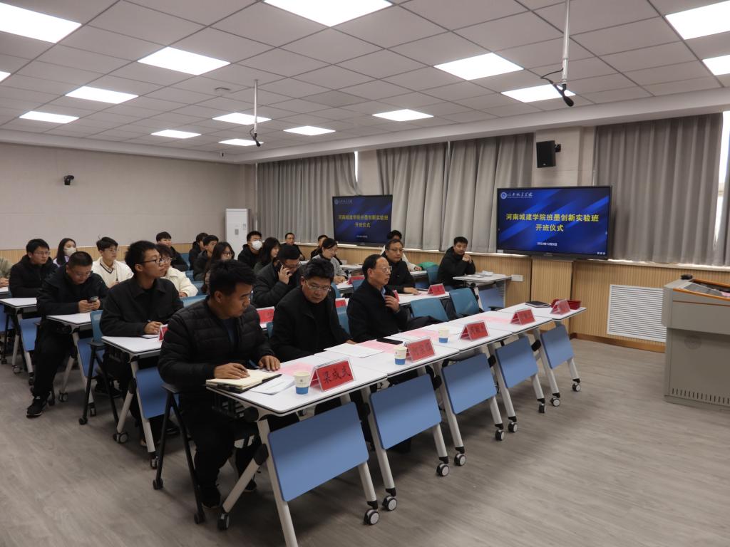 12月5日,我校在10号楼C202智慧教室举行首期班墨创新实验班开班仪式,副校长周颖杰出席并讲话。教务处、土木与交通工程学院、河南省智能输配电与功率变换工程研究中心等部门院系相关负责人,相关专业负责人,班墨创新实验班首期18名学员及导师组成员参加仪式。仪式由土木与交通工程学院副院长宋帅奇主持。