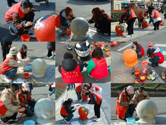 “红色画匠”文化传承服务队。我校青年志愿者走进龙翔社区开展“墩墩大变身”彩绘活动,为社区设计社会主义核心价值观图案,在小区门口石墩上进行创意绘画,美化社区环境,提升文明形象。同时也对校园内部的石墩进行补色修正,为共筑文明美丽校园奉献青春力量。