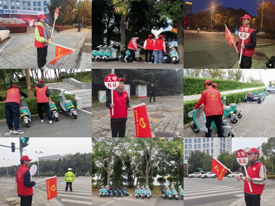 “文明出行”志愿服务队。为配合做好全国文明城市创建,土木与交通工程学院青年志愿者在大香山路和祥云路口我校负责的文明交通岗开展了文明交通志愿活动。志愿者身着红色马甲,手举文明礼让出行旗帜,提醒行人遵守交通规则,引导车辆规范行驶。计算机与数据科学学院青年志愿者在全校范围内开展了以“单车规摆放,共享伴你我”为主题的共享电车整理摆放活动,将校园内的共享单车全部规范停放在规定位置。