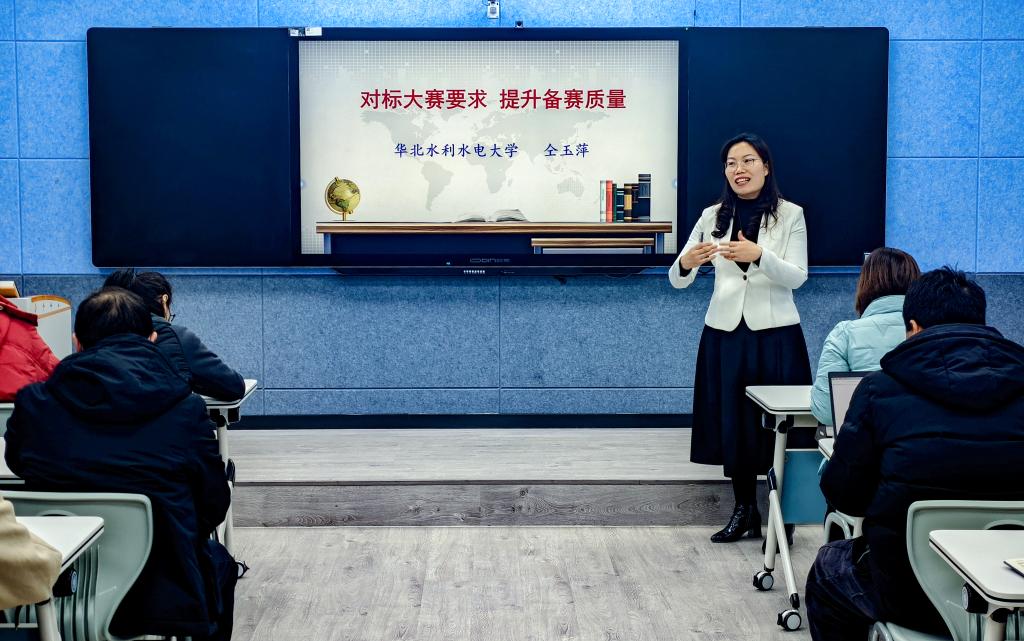 培训会邀请全国优秀教师、首届全国高校教师教学创新大赛获奖教师、华北水利水电大学材料学院院长仝玉萍教授做专题讲座。培训会上,仝玉萍以《对标大赛要求提升备赛质量》为主题,采用现场教学和案例展示相结合的方式对历届参赛文件进行了解读。课上,她结合自己的参赛经验以及多次参与教师课堂教学创新大赛的评审体会对大赛的评审标准进行了全面解读。仝玉萍紧扣第五届河南省本科高校教师课堂教学创新大赛的要求,逐条分析了在提交教学创新大赛材料时应注意的事项和得分点,从教学创新成果报告撰写、课堂教学视频录制以及创新汇报PPT的构思等方面分享了备赛经验。