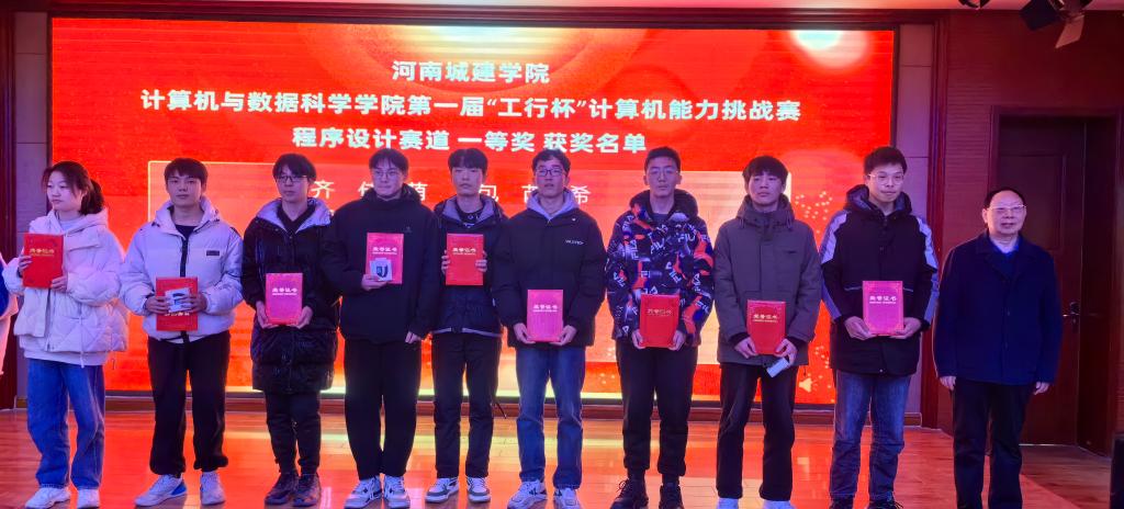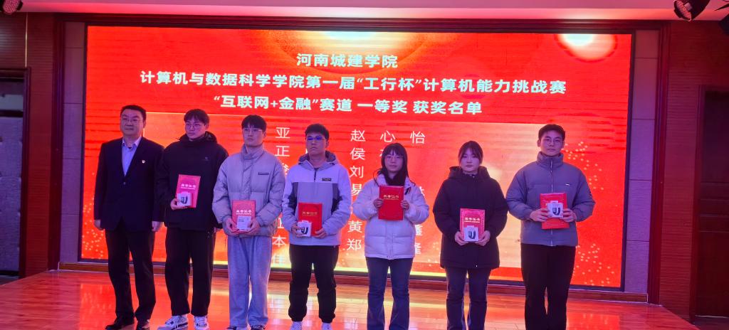 1月12日,计算机与数据科学学院第一届“工行杯”计算机能力挑战赛颁奖仪式在4号楼音乐教室举行。副校长周颖杰、工商银行平顶山分行副行长魏继斌出席挑战赛颁奖仪式,并为获奖选手颁发获奖证书和奖品。本次挑战赛于2023年12月15日启动,计算机与数据科学学院联合工商银行平顶山分行共同举办,设置“互联网+金融”、程序设计、作品创新设计等三个赛道,共有862人次参赛,288人次获奖。竞赛内容覆盖面广,参与的学生人数多,提交的作品质量高,取得了良好的效果,是校企合作、竞赛育人的一次实践范例。