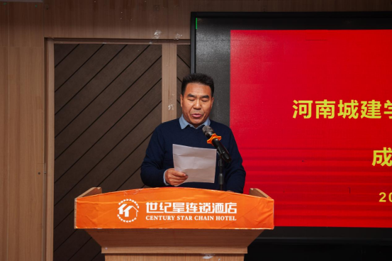 宿金勇致辞,他代表学校对参会嘉宾、校友们的到来表示欢迎,对河南城建学院商丘校友会的成立表示祝贺,向全体在商丘工作、生活的校友致以诚挚问候,对长期以来关心支持母校的校友们表示感谢。宿金勇与校友们分享了学校近年来在学科建设、人才培养、硕士学位授予权单位建设等方面取得的成就。他指出,商丘是国家历史文化名城、人口大市、农业大市和重要交通枢纽城市,还是全国文明城市、国家卫生城市、国家园林城市、国家森林城市,是一座发展迅猛、充满活力与机遇的城市。多年来,商丘校友发挥自身特长,不断开拓进取,在各自岗位上发挥着重要的作用,为商丘经济社会发展做出了积极贡献,为母校赢得了赞誉。商丘校友会的成立,为广大商丘校友搭建了校友与母校、校友与校友之间沟通、交流、共谋发展的平台,也将进一步扩大母校的影响力。他希望当选的商丘校友会理事会成员履职尽责、建好平台、共享资源,希望广大商丘校友继续关心和支持母校发展建设,积极参与、支持校友会活动,借助校友会平台提升自我、成就自我,为母校和社会发展作出新的更大贡献。
