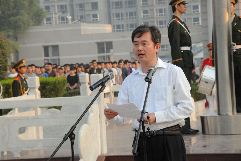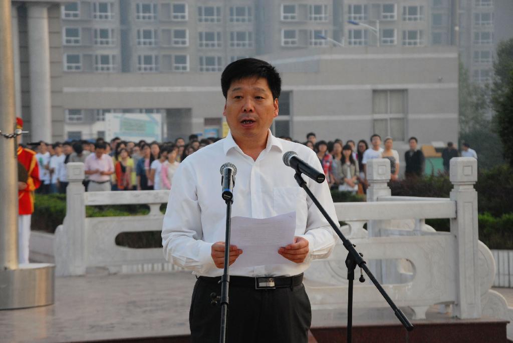 王召东在讲话中强调了举行纪念仪式的重要意义,他强调,广大同学要自觉地把个人的前途和发展同祖国和人民的事业联系在一起,继续发扬以爱国主义为核心的民族精神和以改革创新为核心的时代精神,做到理性爱国,自觉维护国家和民族的安定团结,自觉加强思想修养,提升思想道德素质;要努力学习,珍惜大学时光,科学规划人生,刻苦学习专业,勇攀知识高峰,不断追求卓越;要自强不息,全面发展,充分利用各种资源,广泛吸取营养,提高文化修养,增强创新意识,积极参加各种实践活动,把自己锻炼成为全面发展的社会主义事业的合格建设者和可靠接班人。