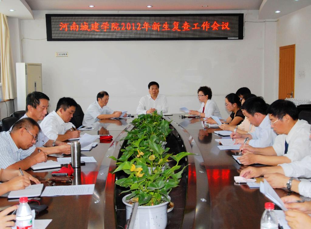会上,招生就业处处长王靖宣读了河南城建学院新生资格审查制度,并对2012级新生复查工作做了详细的安排部署。教务处副处长朱绍智传达了河南省教育厅教办学[2012]248号《关于做好2012年普通高等学校新生报到及学籍电子注册工作的通知》文件精神。孙留山强调了新生复查纪律。