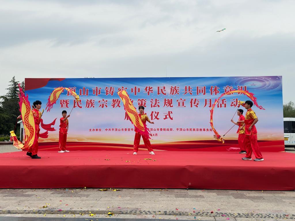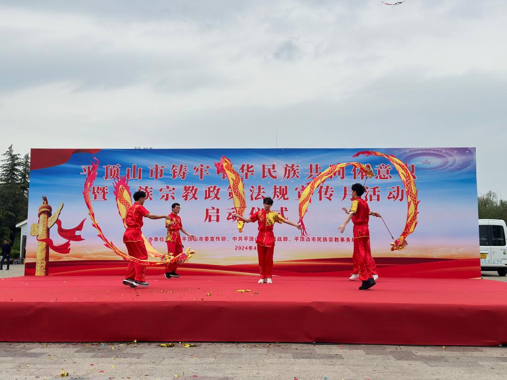 根据省委宣传部、省委统战部和省民族宗教委通知安排,4月3日下午3:30,平顶山市民族宗教事务局在鹰城广场举行铸牢中华民族共同体意识暨民族宗教政策法规宣传月活动启动仪式,我校龙狮代表队受邀进行《彩带龙》表演。