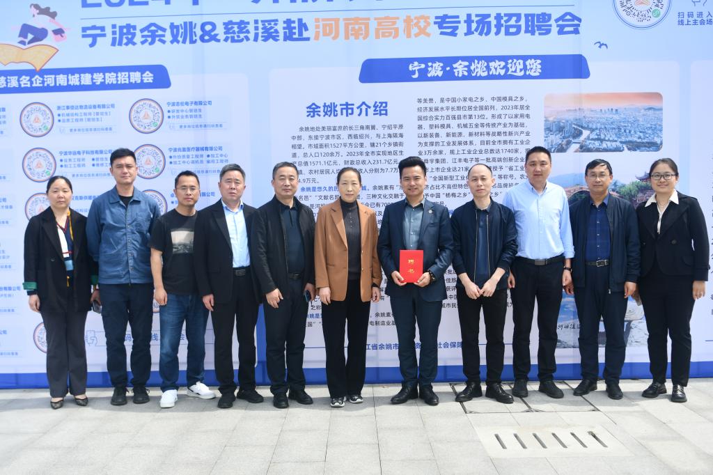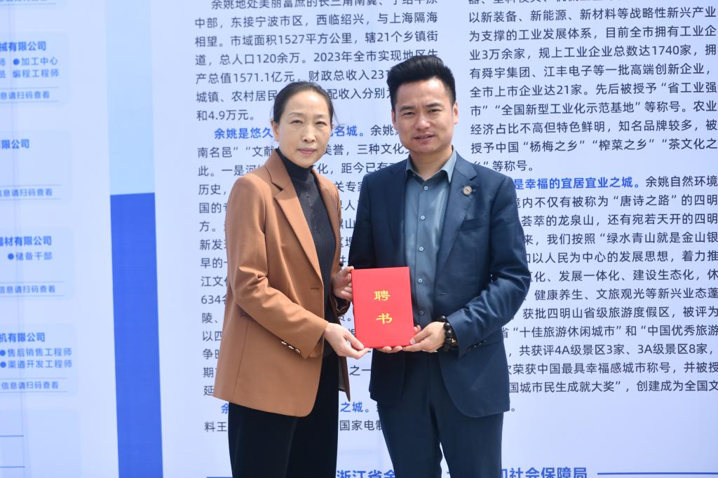 招聘会现场,吴晓红为受聘专家宁波永基精密科技有限公司总经理陈明明颁发聘书,正式聘请陈明明为我校大学生创业导师。余姚、慈溪等人社局领导也积极为我校毕业生介绍当地的产业发展、就业环境及人才招引政策,致力于为毕业生提供丰富的就业选择和优厚的待遇条件。