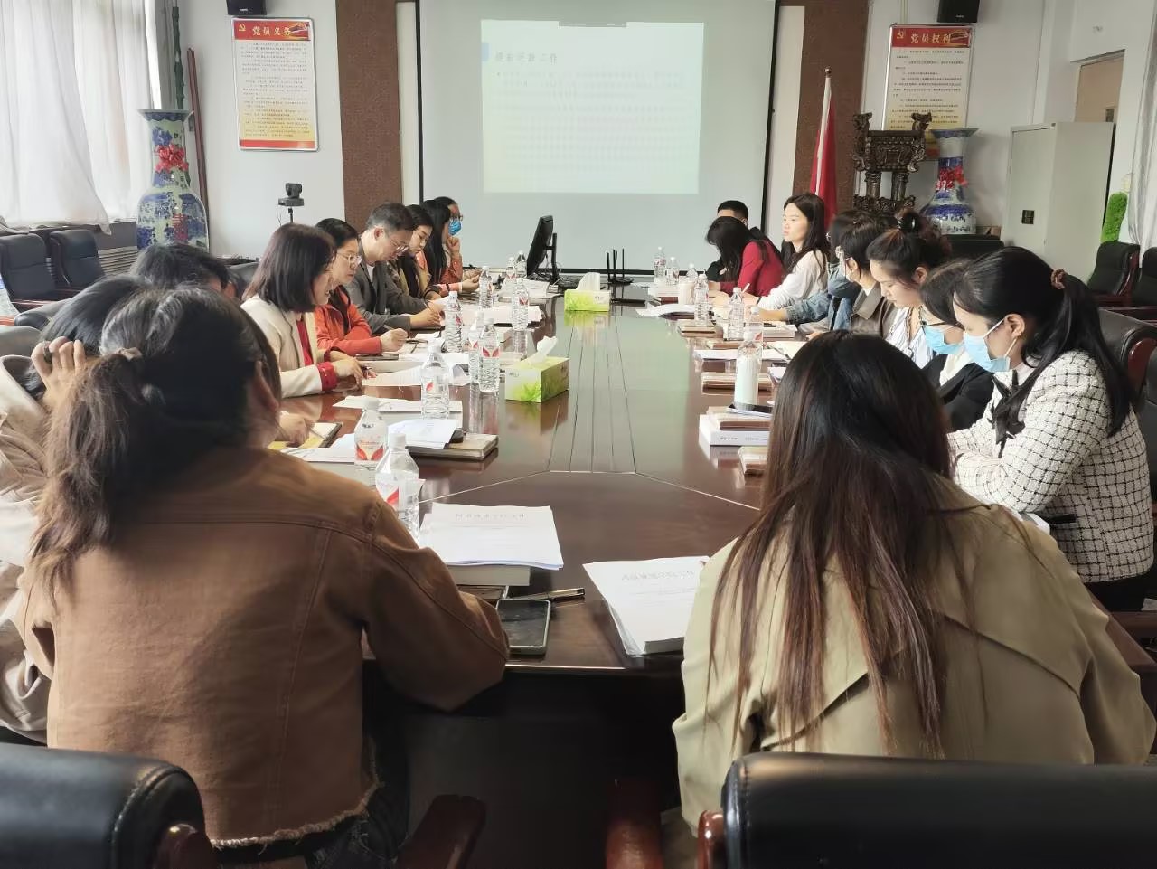 会议伊始,贷款管理部李素锦老师就贷款管理、兵役资助、校方责任险等相关工作进行安排布置,强调了时间节点及具体要求。随后,助学服务部宋伟对制度建设、精准资助及资助育人等相关工作进行梳理安排。