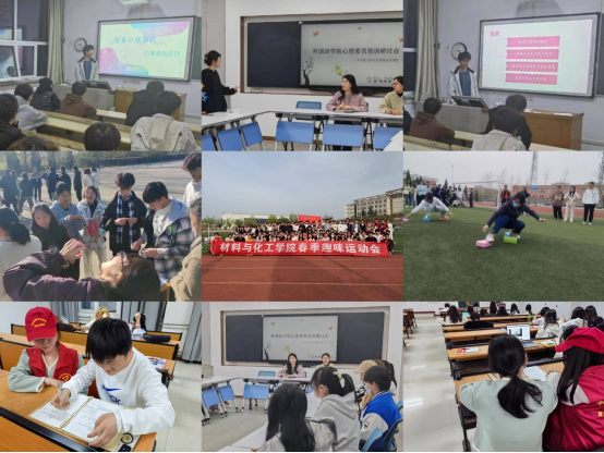 关注心理健康,守护精神世界。组织开展朋辈心理帮扶——心理情景剧活动,实现“聚是一团火,散是满天星,朋辈助心理,智慧育人心”。外国语学院开展心理委员研讨会同老师共同交流心理亚健康状态、分享经验与心得;法学院开展趣味运动会和学习帮扶以疏导学生心理问题,释放压力。
