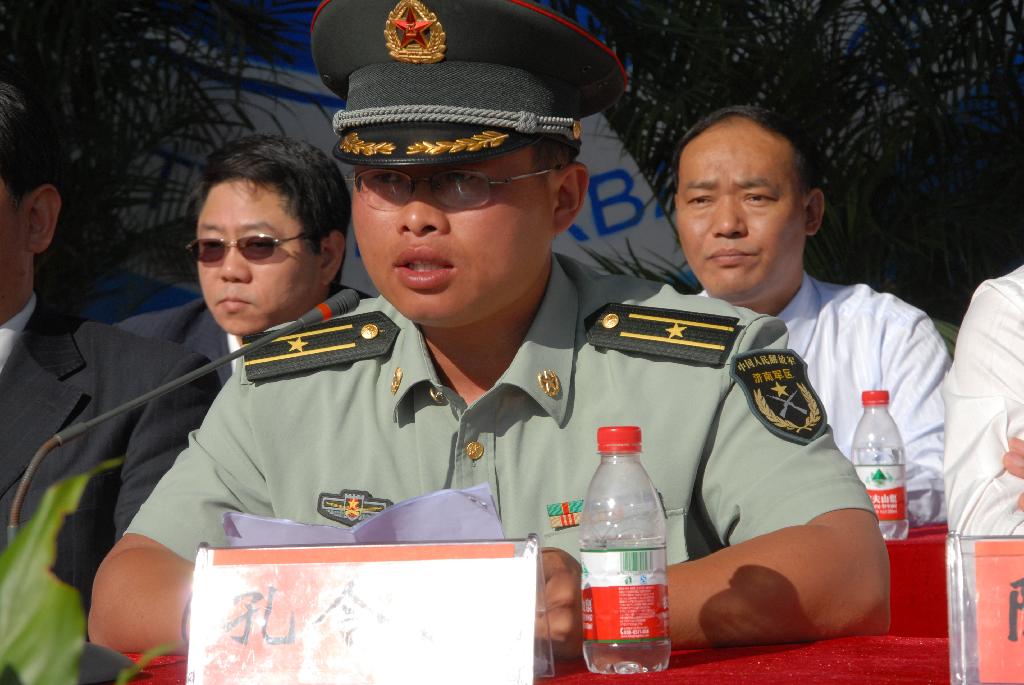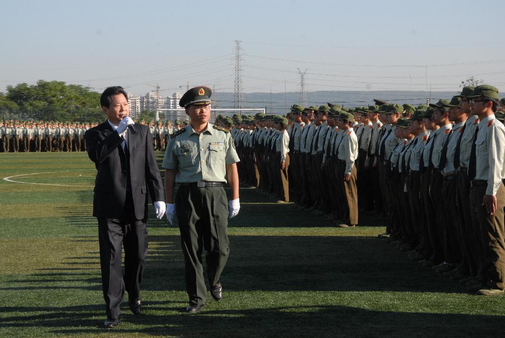 军训团团长孔令磊在讲话中,对我校参训学生在军训中取得的训练成绩给予充分肯定;新生代表张梦刚同学在发言中谈了军训的感受和收获。