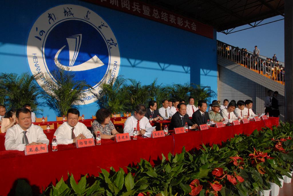 金秋九月,秋高气爽,丹桂飘香。9月28日上午,我校2012级新生军训阅兵暨总结表彰大会在理工学区塑胶操场隆重举行。校领导李德平、孔留安、王召东、李建生、陈丙义、杨留栓、张坤书、王春阳、赵金安及71382部队领导副参谋长刘洋、教导员孔令磊等出席大会,大会由副院长赵金安主持。学校各相关职能部门、各系部负责人、60余名教官及4600余名新生参加了大会。