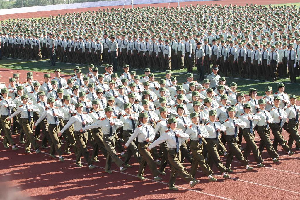 随后,李德平书记宣布阅兵式开始。孔留安院长在部队领导的陪同下,对40余个受阅方队进行检阅,领导亲切的问候和同学们铿锵有力的回应如惊涛骇浪般澎湃在学校上空,展现了同学们积极上进、顽强拼搏的精神风貌。在分列式的表演中,他们以统一协调的方队阵容、响亮有力的口号和威严挺拔的军姿展现了训练成果,以优异的训练成绩和饱满的精神面貌向各级领导和全校师生作了汇报。