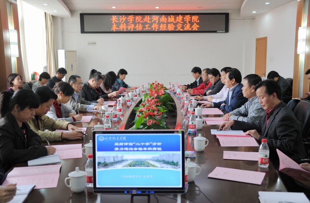 10月18日下午,长沙学院院长刘耘一行来我校,就本科教学合格评估工作进行座谈与交流,院长孔留安在第一会议室组织召开座谈会。副院长王春阳、赵金安出席座谈会,机关及各系部院相关负责同志参加座谈会。