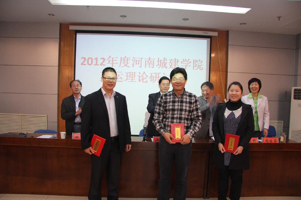 会议对获得2012年度河南城建学院工运理论研究优秀组织单位和优秀成果奖的作者分别进行了表彰。会上,工运理论研究优秀成果奖获得者代表何宗耀、胡红伟分别做了交流发言。