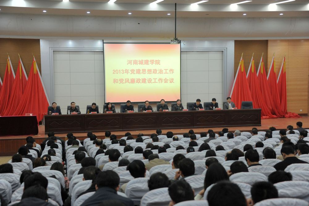 3月22日下午,我校在学术报告厅召开2013年党建思想政治工作和党风廉政建设工作会议。全体校领导出席会议,党委书记李德平作重要讲话,会议由党委副书记、院长孔留安主持。全校副科级以上干部及全体辅导员参加会议。