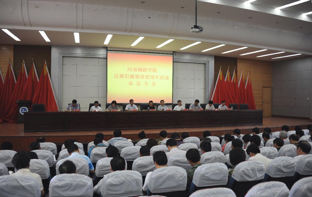 5月14日下午,我校在学术报告厅召开反腐倡廉制度建设年活动动员会。会议传达了省委高校工委、省教育厅党组有关文件精神,部署了我校反腐倡廉制度建设年活动工作。校领导李德平、孔留安、史战芳、王召东、李建生、陈丙义、杨留栓、张坤书、赵金安、许朝民出席会议,全体中层正职及主持工作的副职领导干部参加会议。会议由党委副书记、校长孔留安主持。