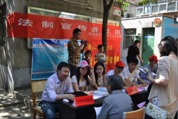 5月11日,应平顶山市卫东区优越路街道地质社区之邀,我校义务法制宣传队在法学院党总支书记张龙栓的带领下,来到地质社区开展了法制宣传活动。