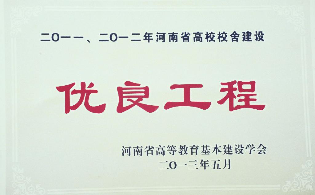 (通讯员 董明明)近日,河南省高等教育基本建设学会2013年年会在新乡市原阳县召开,会议对“河南省高校基本建设管理先进单位”及“河南省高校校舍建设优良工程”进行了表彰,我校体育馆工程被授予“河南省高校校舍建设优良工程”荣誉称号。这一荣誉是对我校基建工作的充分肯定,也体现了学校近年来工程建设管理水平的不断提高。