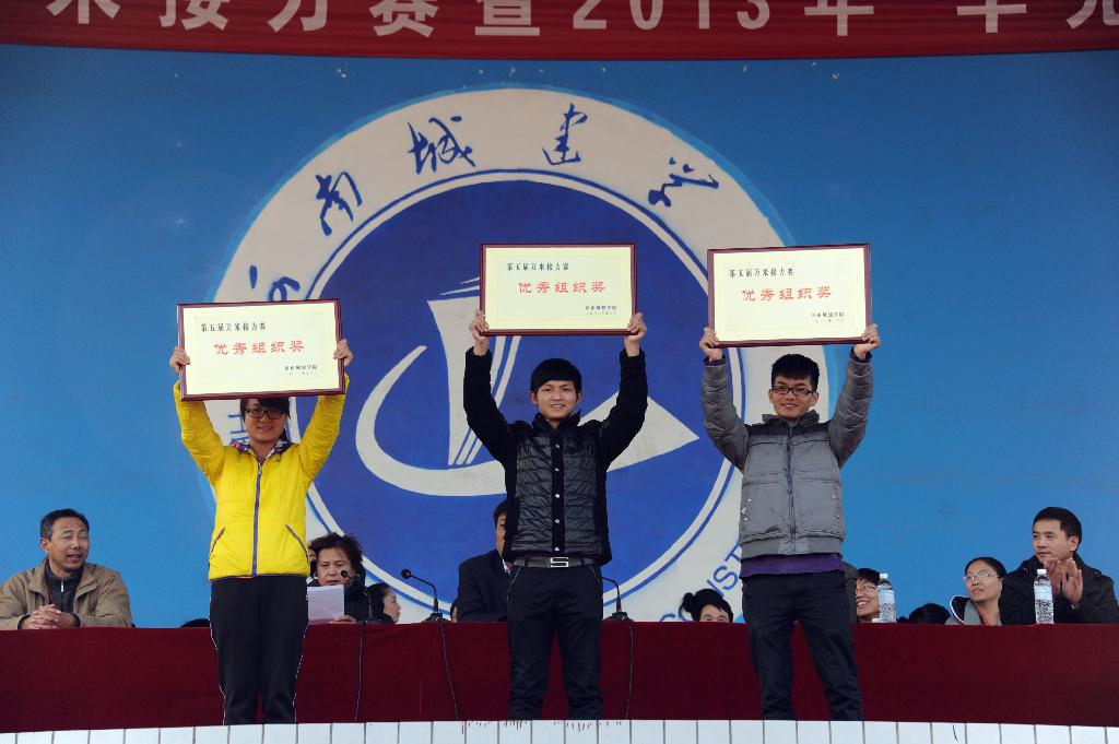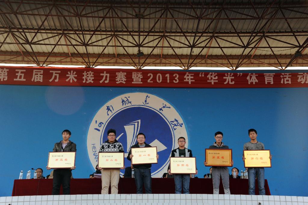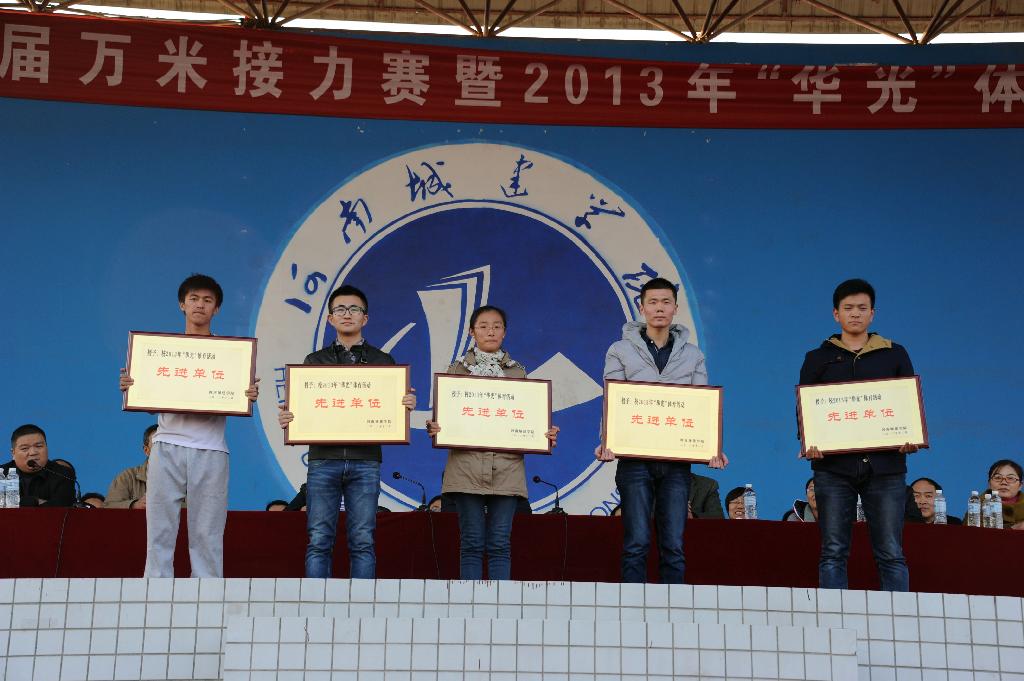 颁奖仪式上,学校还对获得2013年校“华光”体育活动中涌现出的5个先进单位、31个先进班级、157名先进个人进行了表彰。校领导和部分学院负责人为获奖集体颁发了奖牌。