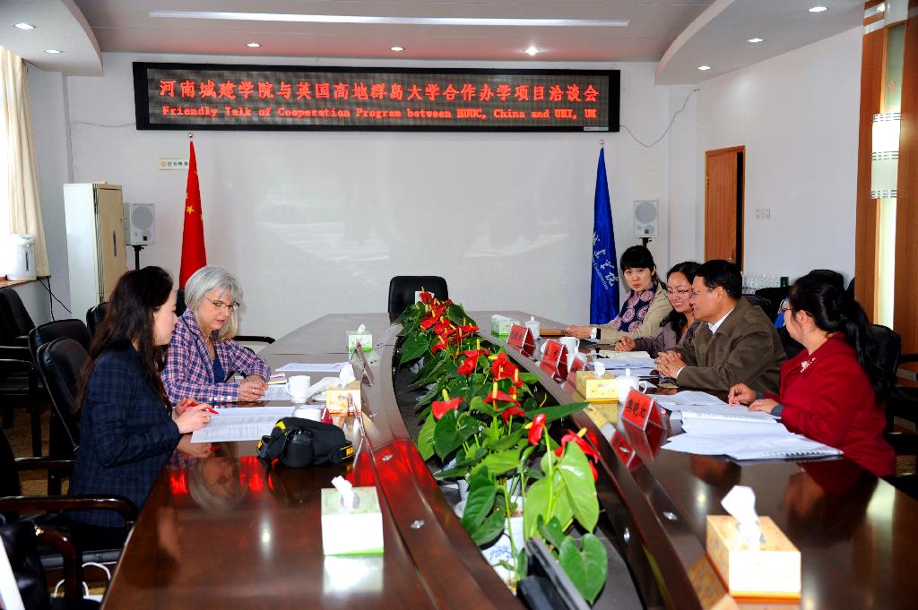 (通讯员 刘晓燕)3月17日上午,我校中英本科合作办学项目合作院校英国高地群岛大学(University of the Highlands and Islands, UK,以下简称UHI)珀斯学院院长Margaret Munckton、电气工程系主任Robert Kay、中国联络处代表申琳女士一行来校进行友好访问。我校在第一会议室举行洽谈会,副校长杨留栓出席会议,国际合作交流处处长金利、电气学院院长樊晓虹及其他有关人员参加会议。